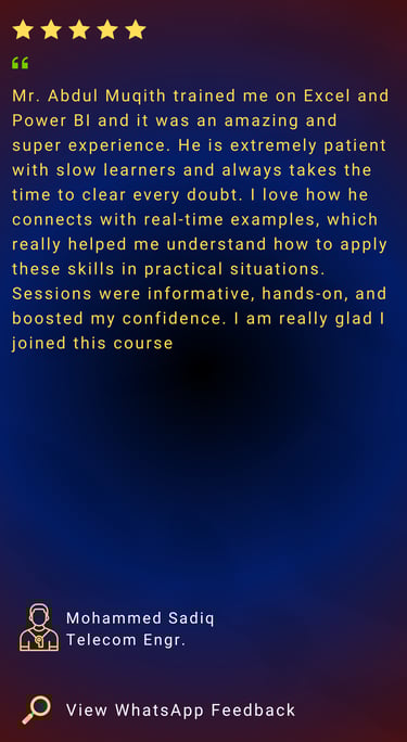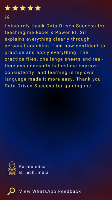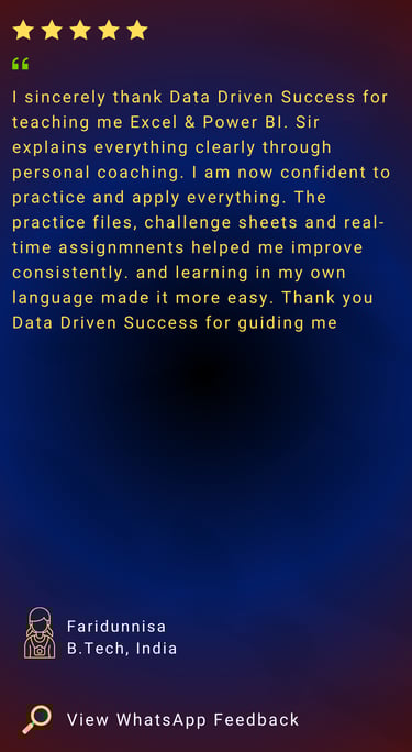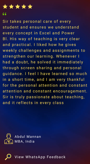 Advanced & complex formulas, Power Query automation, AI-assisted Excel techniques, professional dashboards & real company Excel scenarios for college students and working professionals.