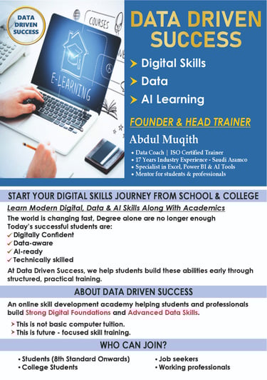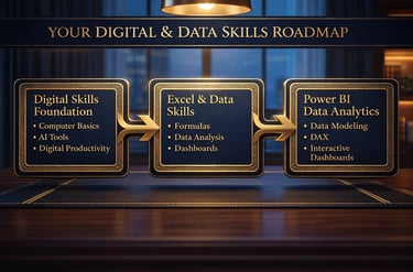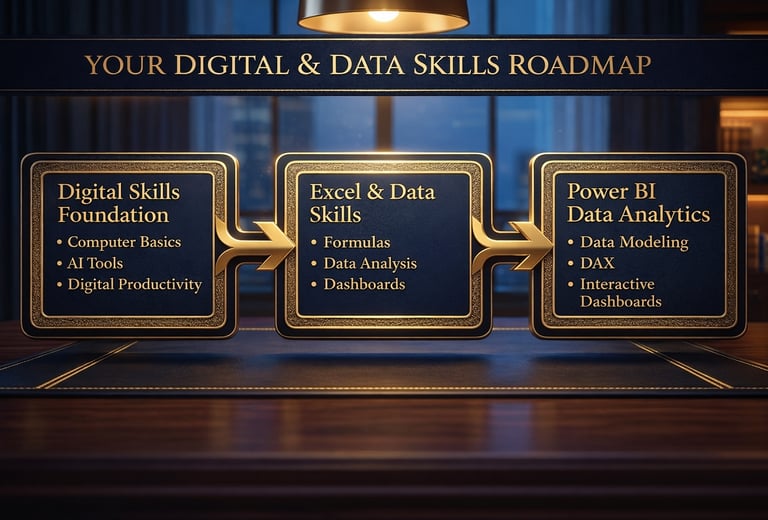 At Data Driven Success, our courses follow a clear step-by-step learning journey so students develop strong foundations before moving to advanced tools.