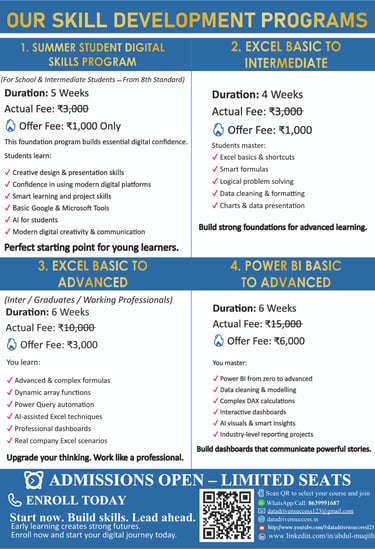 If you are serious about learning Excel, Power BI and digital skills, now is the right time to begin.