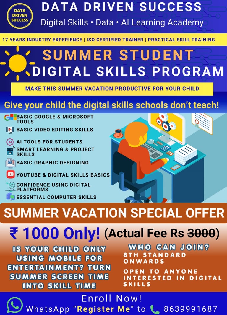 A powerful foundation in digital intelligence, AI awareness, and practical learning skills that helps school, college students & working professionals build confidence, think smartly and prepare strongly for future.
