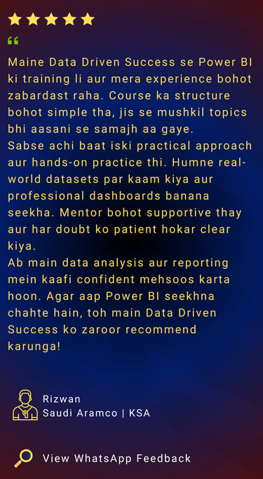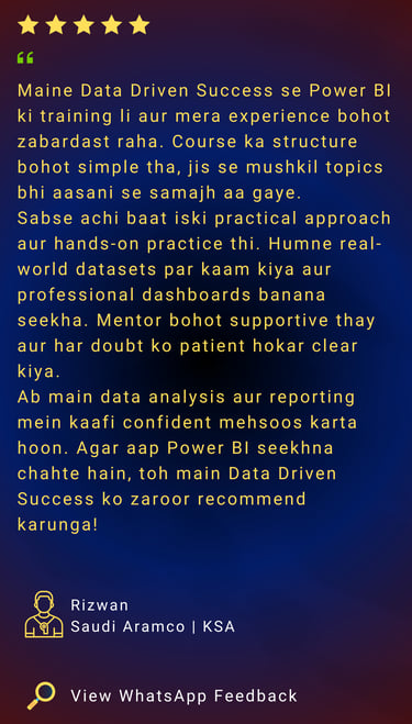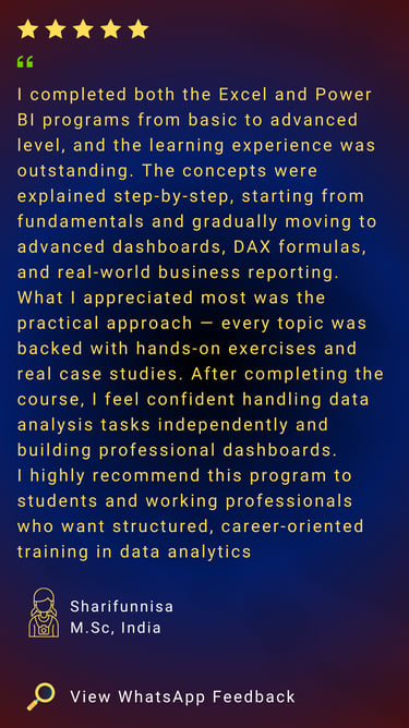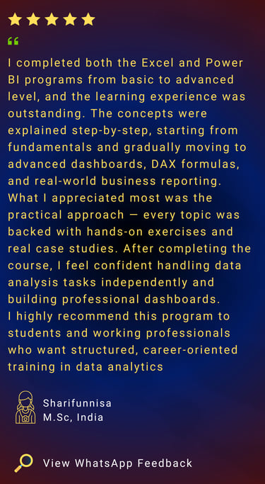 A data analytics program where learners understand data modelling, DAX calculations, and interactive dashboards used in modern reporting and analytics.