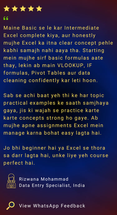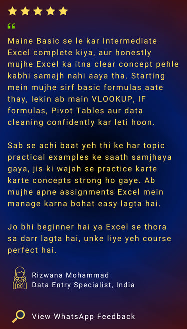 A foundation course that helps learners understand Excel formulas, data handling, charts, and essential Excel skills used in studies and professional work.